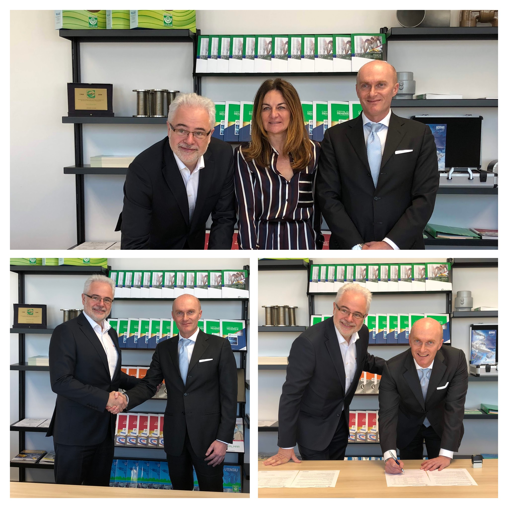 Alla firma, avvenuta presso la sede italiana di Dalmar SpA, erano presenti Angelica Ragazzi (CEO di Dalmar), Michel-Andre Courcol (Executive VP O-Rings Division di Hutchinson Le Joint Français) e Roberto Scuratti, nuovo Direttore Generale di Dalmar in carica da qualche mese.