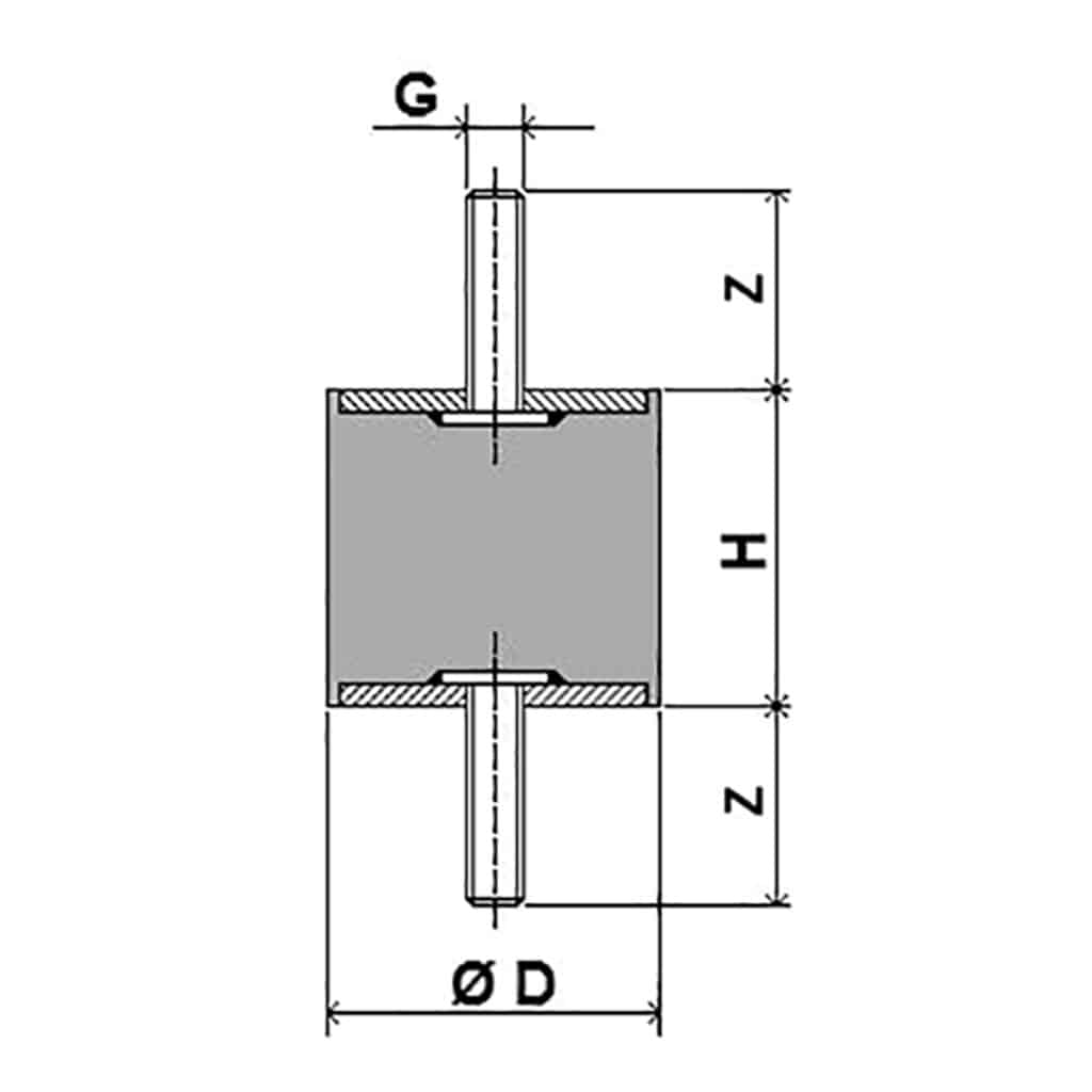 Sono costituiti da un cilindro in gomma naturale e da una armatura in acciaio zincato. Caratterizzati da una elasticità radiale superiore a quella assiale, possono lavorare a compressione oppure a taglio a secondo delle condizioni di montaggio. È l’antivibrante più semplice, di ingombro minimo e viene catalogato in base al tipo di fissaggio e alle dimensioni delle parti filettate.
