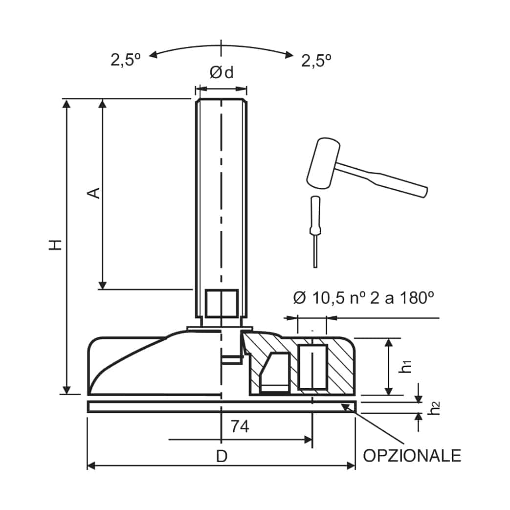 TIPO STELO: orientabile max 2,5°