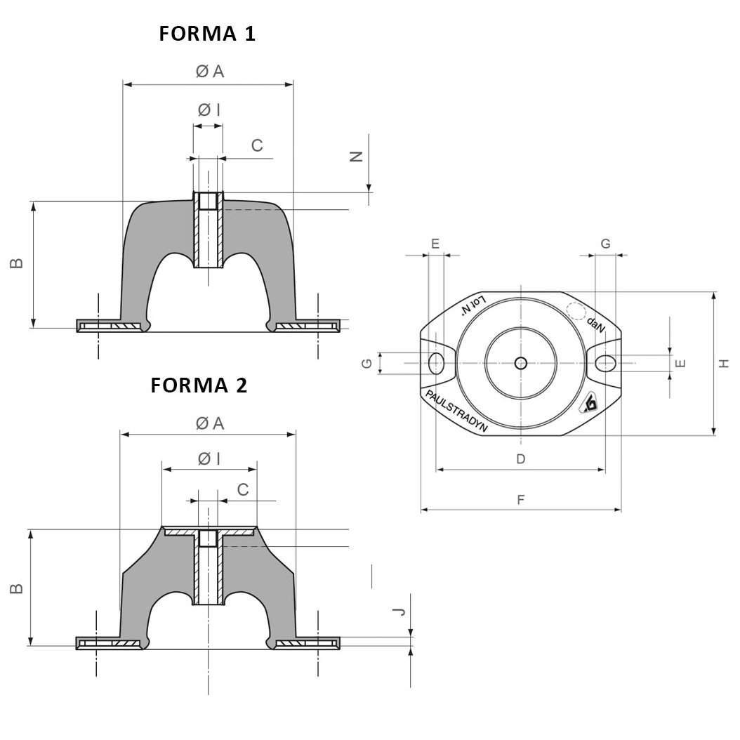 I supporti antivibranti Paulstradyn® sono ideali per l’isolamento di vibrazioni con basse frequenze. La particolare formula SILTECH ne consente un basso aumento della rigidità dinamica con una minima deformazione del supporto. La resistenza a oltre 500 ore in nebbia salina permette l’uso di questo antivibrante anche in ambienti marini.