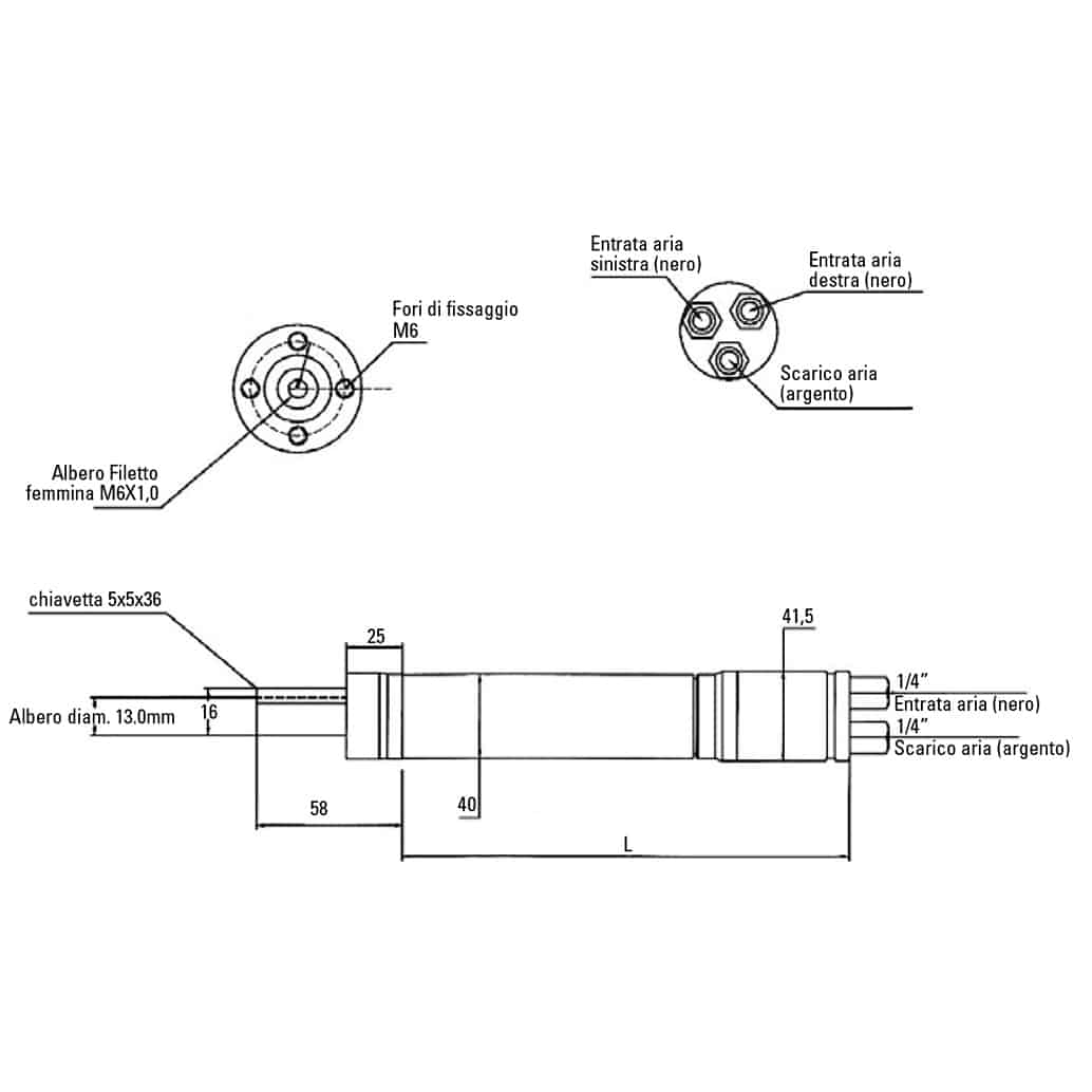 modello velocità giri/min coppia di spunto Nm coppia di stallo Nm peso kg lunghezza mm consumo aria l/min potenza max Watt diametro mm