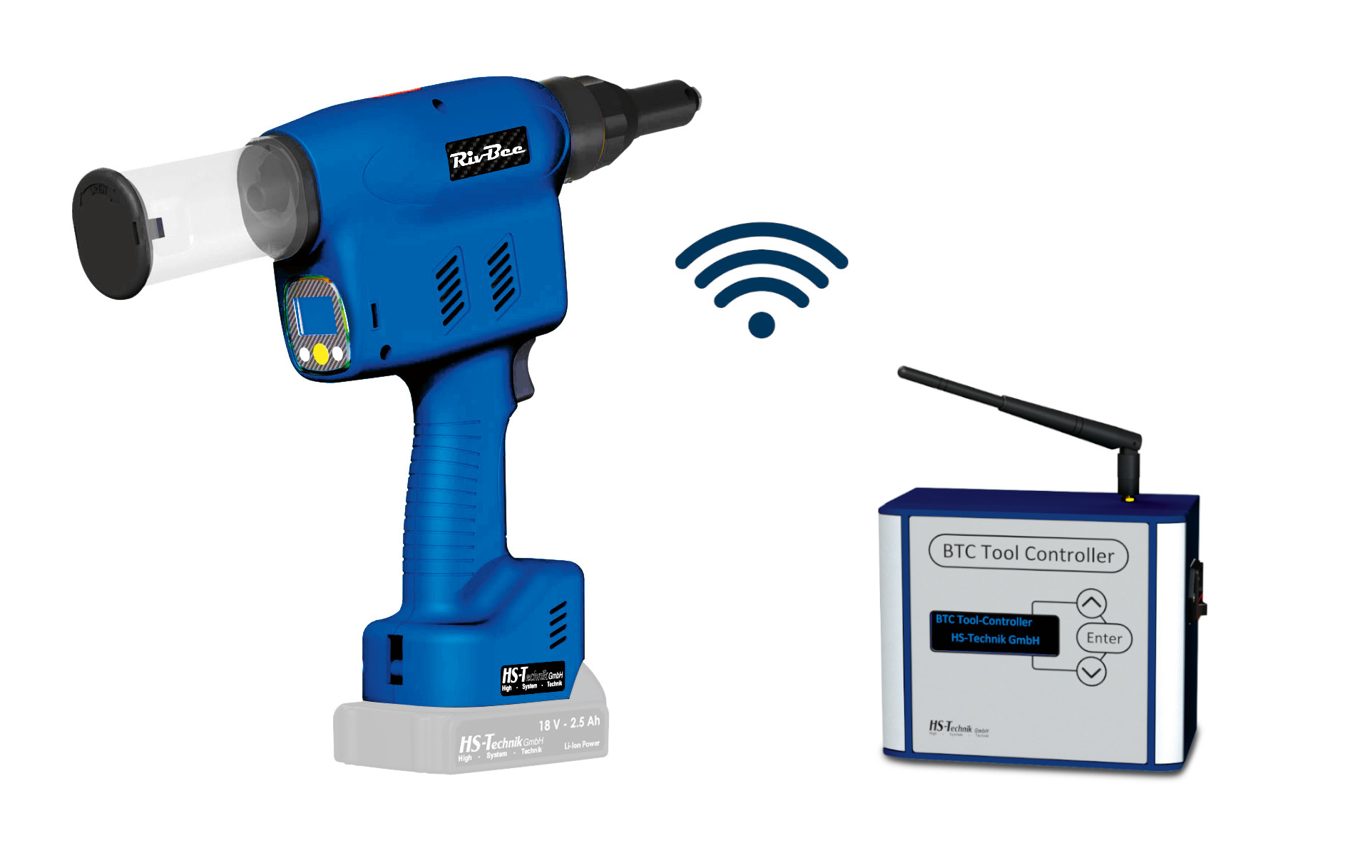 Per raggiungere il massimo controllo della produzione, è possibile collegare la centralina. La BTC permette di gestire Wi-Fi fino a 20 utensili a batteria contemporaneamente: rivettatrici, tirainserti e avvitatori.