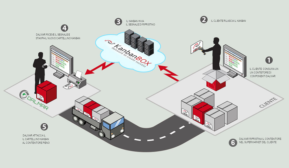 Con il sistema di logistica integrata KanbanBOX, Dalmar può offrire un servizio di vendita a kanban capillare e personalizzato capace di garantire efficienza, flessibilità e assistenza: