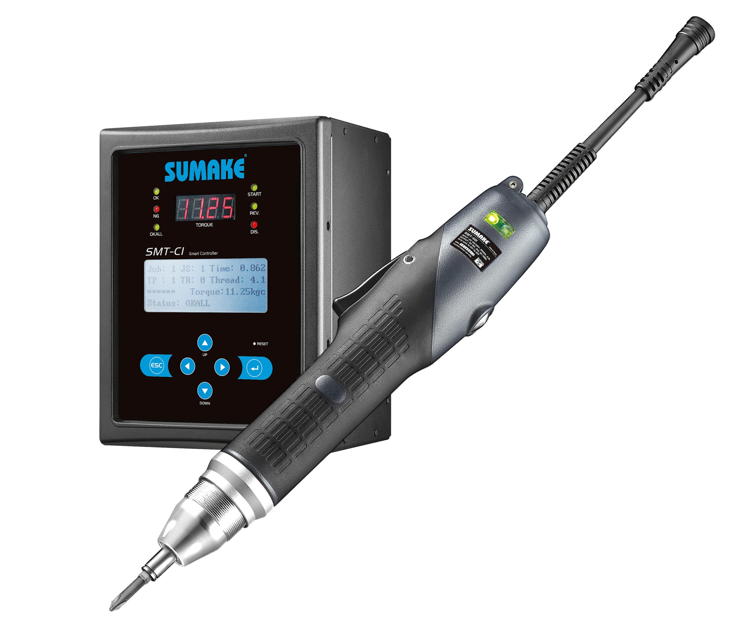La serie SMT di Sumake si compone di una centralina SMT-C1 e tre modelli di avvitatori elettronici con trasduttore di coppia, DC brushless, fino a 7 Nm.